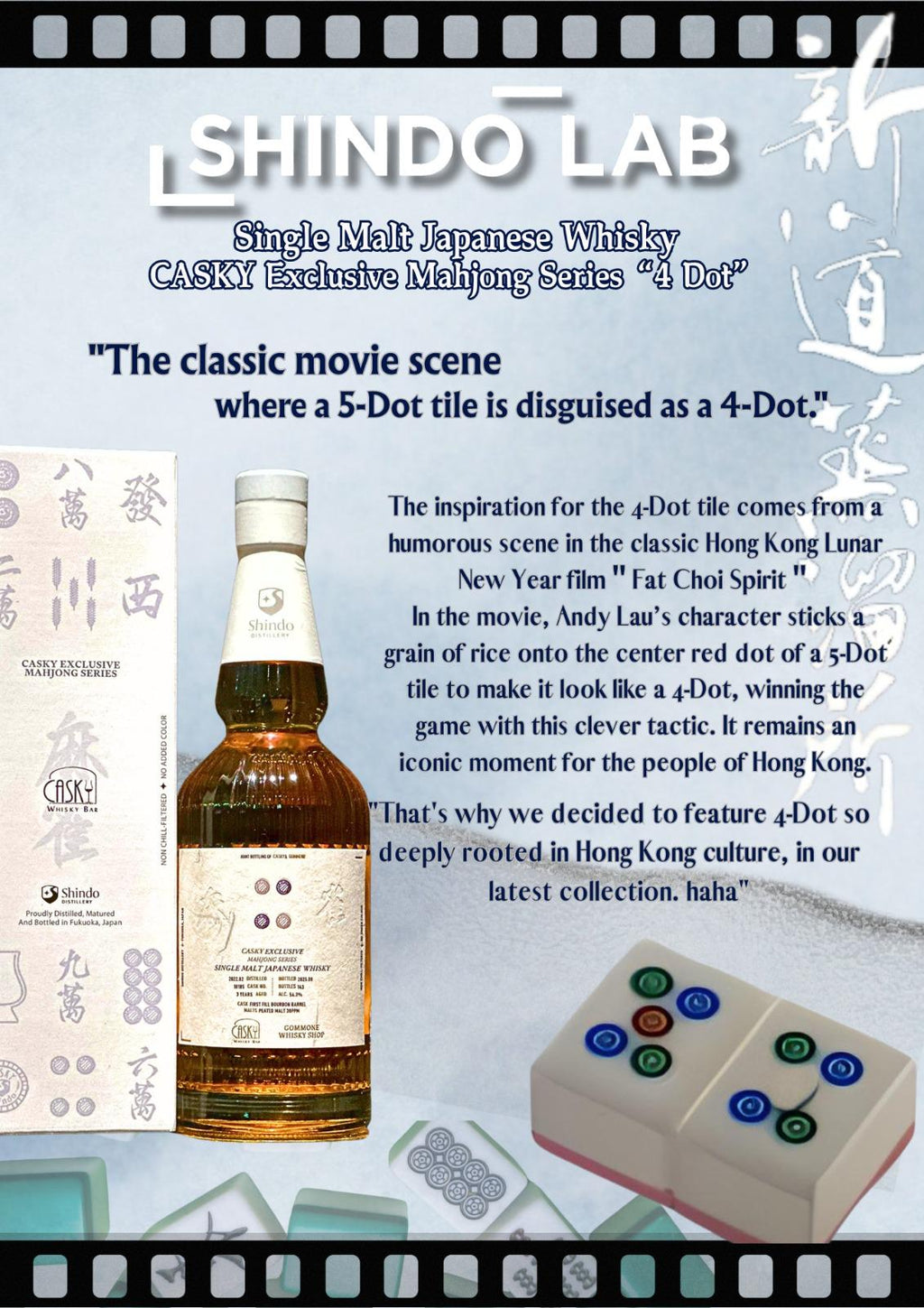 4筒タイルの着想は、香港の旧正月映画の名作『ファット・チョイ・スピリット』のユーモラスなシーンに由来します。