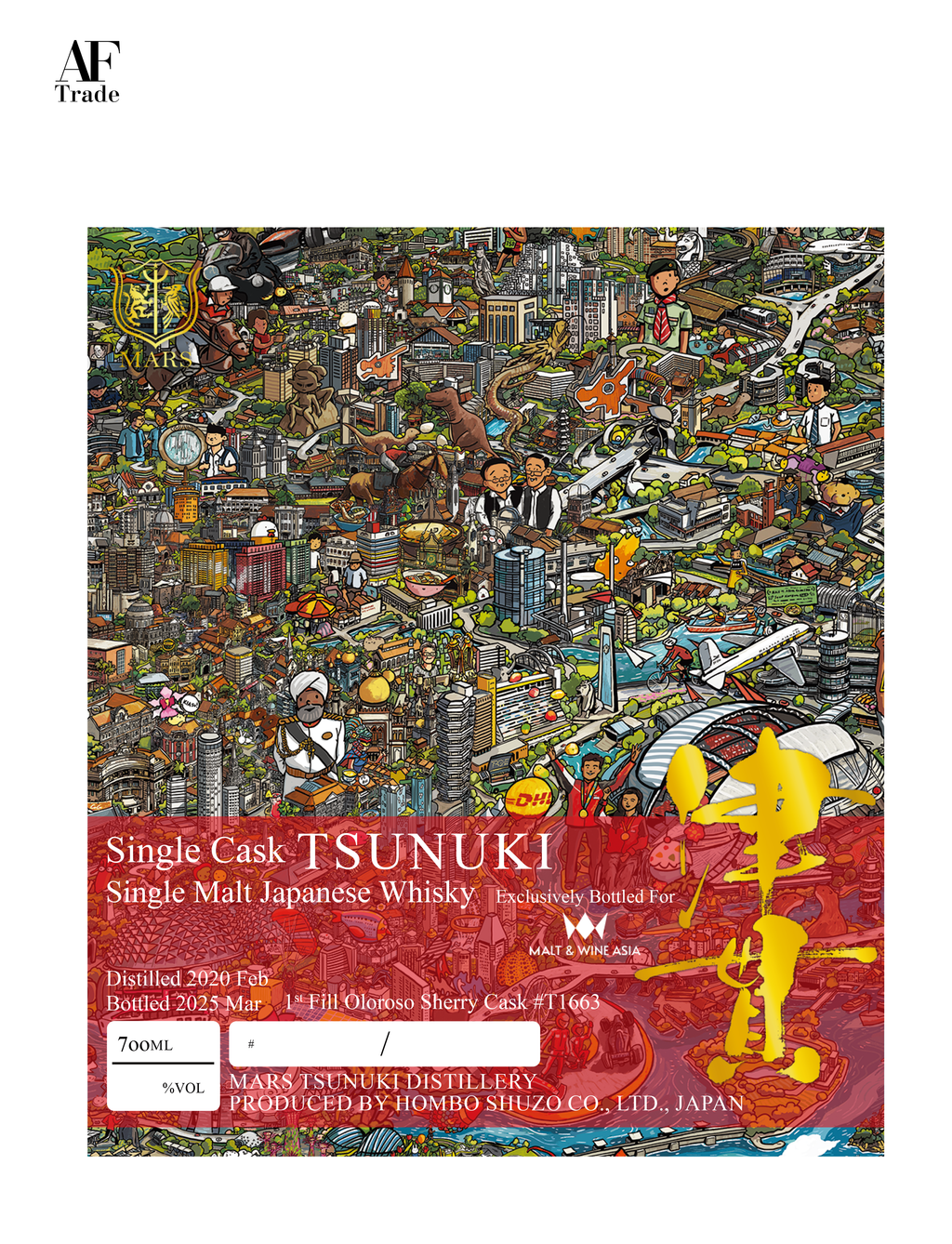 MARS, Single Malt Whisky, Tsunuki 2020 Oloroso Sherry Cask #T1663, Cask Strength (58% ABV)